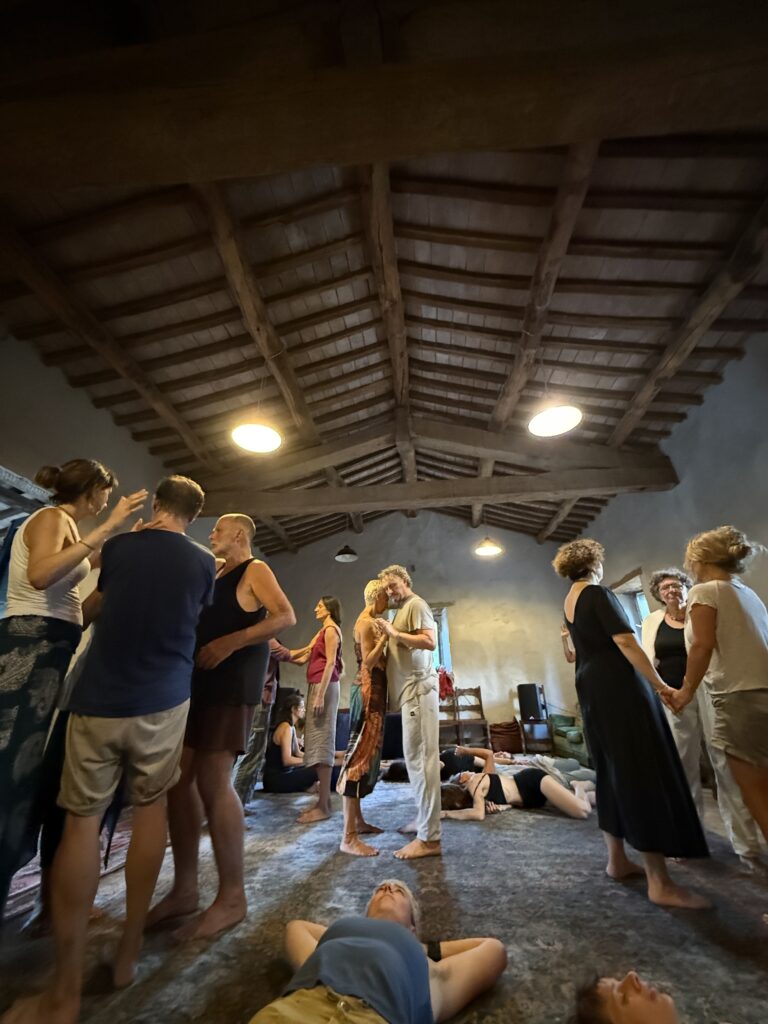 At certain moments we will also come indoors — in our dance hall at Dagnino, still in the process of renovation but already a beautiful and welcoming space for movement — as well as in the house, where we can gather in a more intimate atmosphere for reflection, integration, and sharing.
