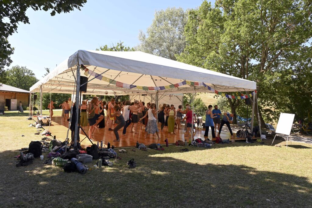 Ogni giorno c’e almeno una sessione di 5Ritmi e sessioni a rotazione di Movement Medicine, Open Floor, Soul Motion, Azul, Ecstatic dance & Trance Dance… ed altro.
